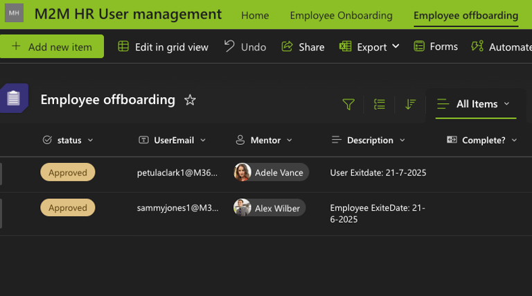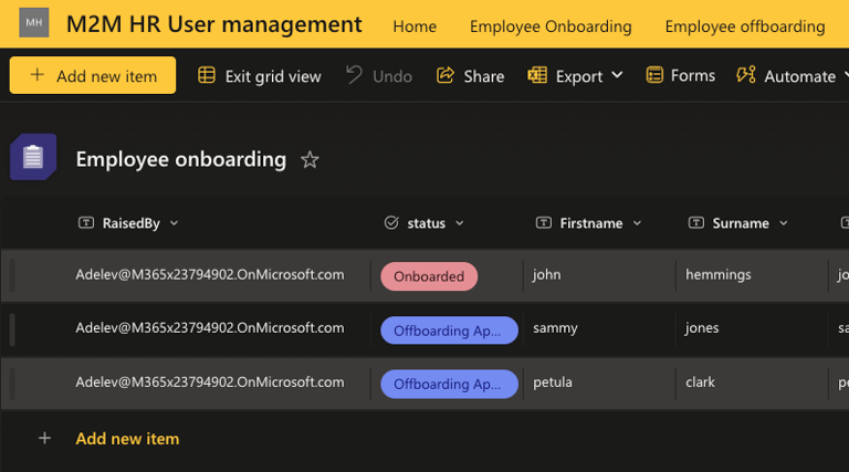 A Microsoft 365 based solution providing an integrated and automated approach to simplify Employee Onboarding and Offboarding.